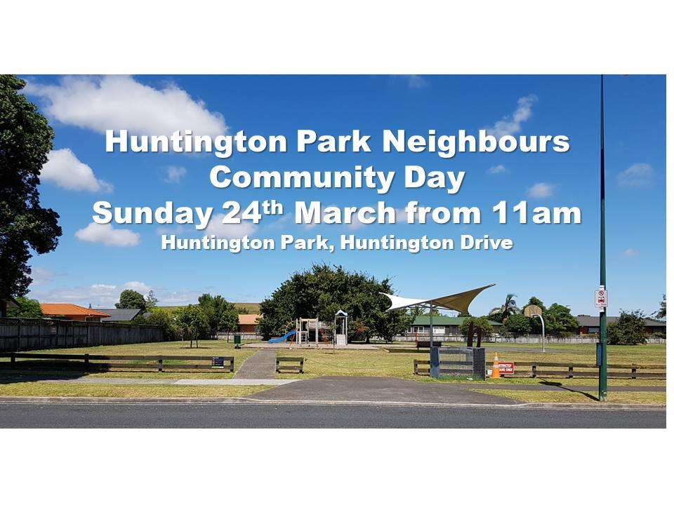 The Huntington Park Residents & Rate Payers Association are holding the Neighbours Community Day in the Park on Sunday 24th March. It starts at 11am This will be held in Huntington Park, on Huntington Drive.