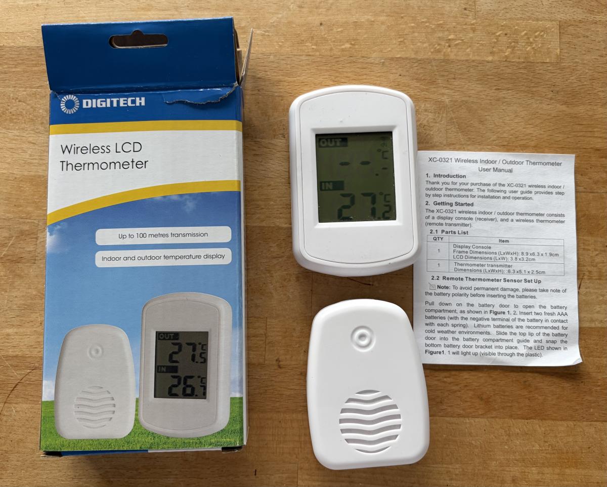 Perfect for … View moreDigitech wireless LCD thermometer set with indoor display unit and outdoor sensor.