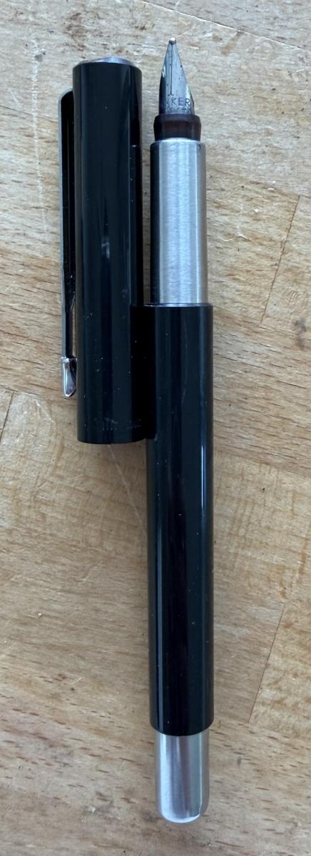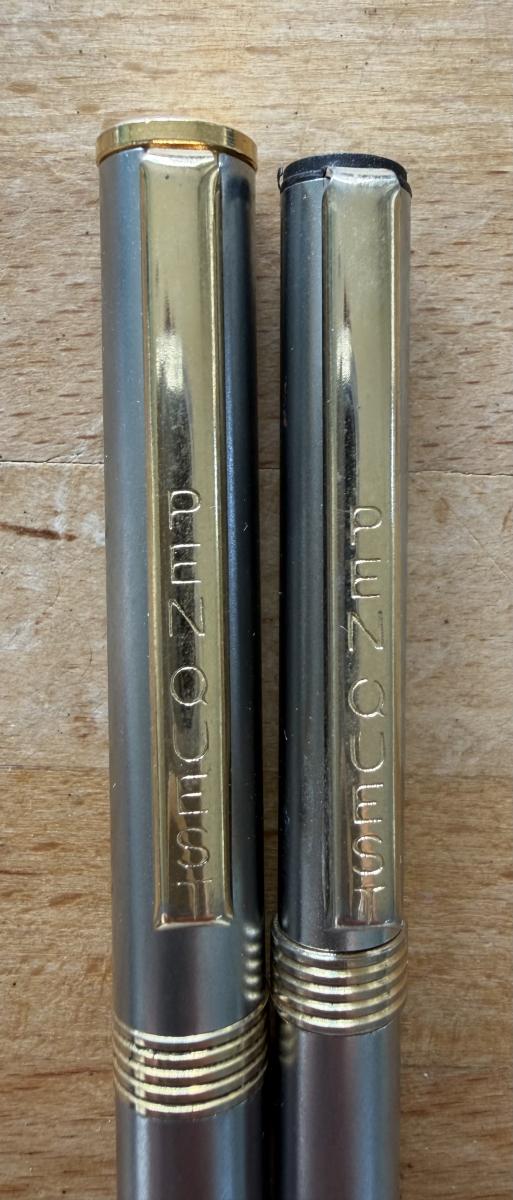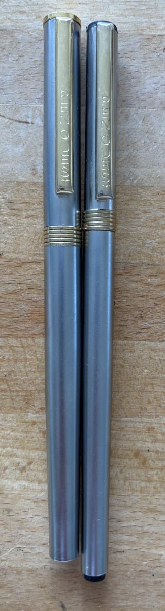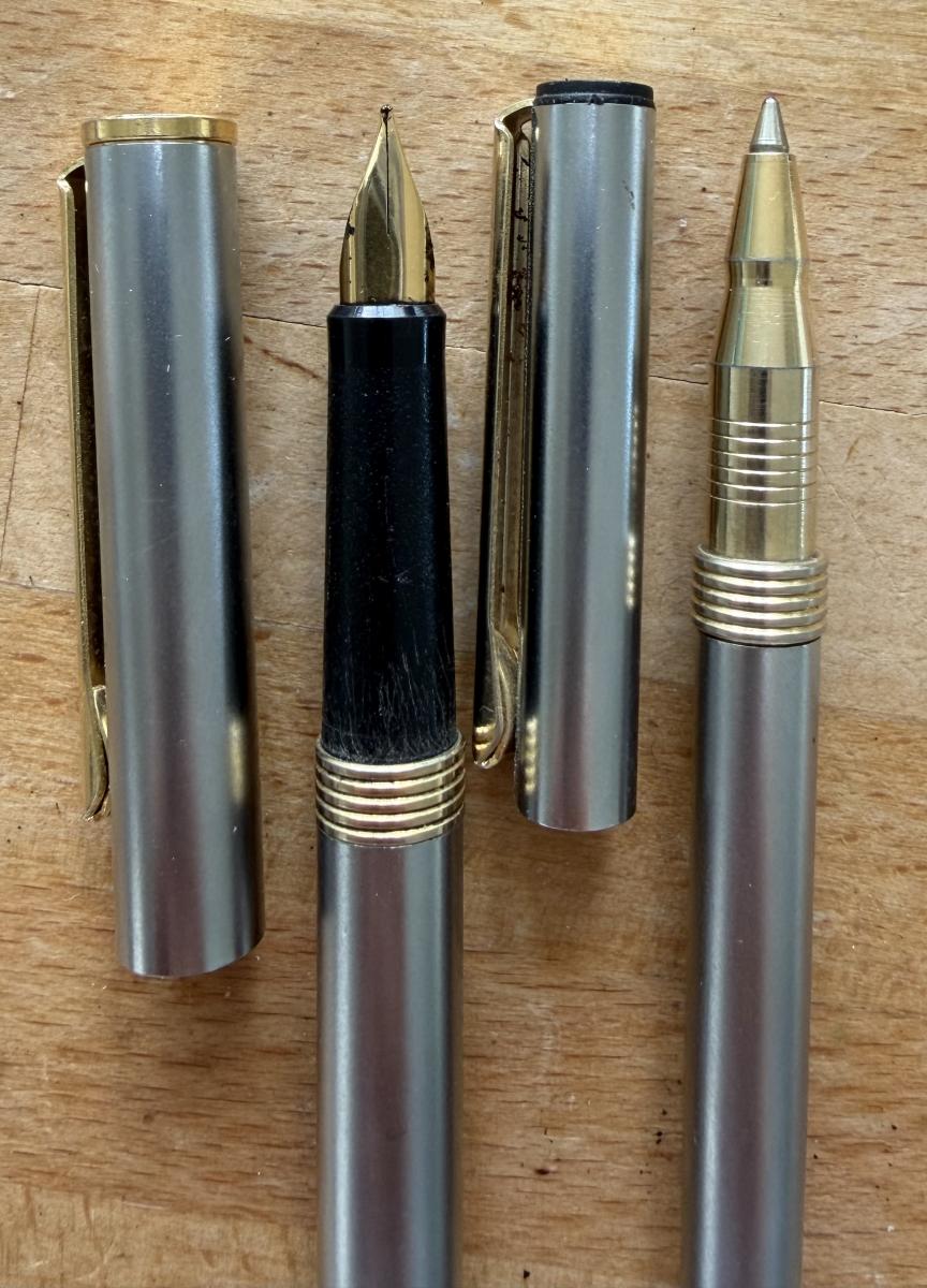Includes a fountain pen with gold nib and a matching ballpoint/rollerball.