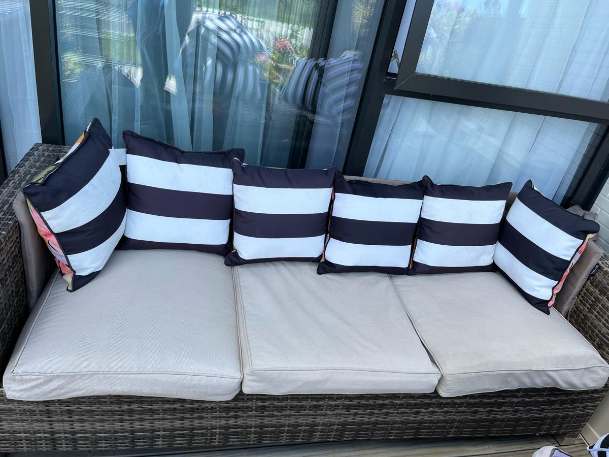 $10 each. 6 x outdoor cushions that are reversible. 40cm x 40cm. Includes the inner cushions. In perfect condition. No damage. Pick up is Flat Bush or otahuhu.