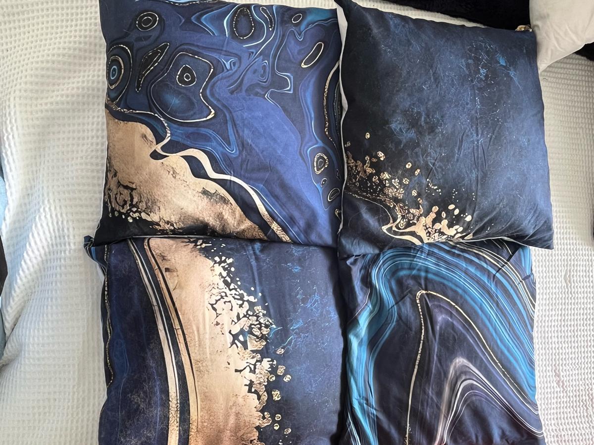 4 x blue multi cushion covers. In perfect condition. No damage or stains. Pick up from Flat Bush or otahuhu.