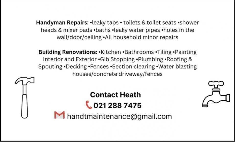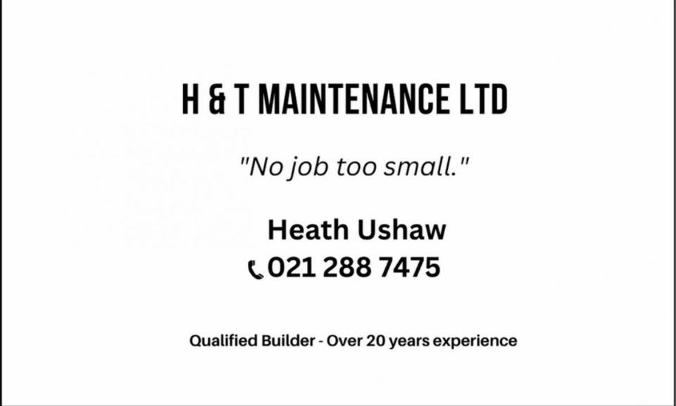 H&T Maintenance is a local business owned and run by Heath with over 20 years experience. Check out his card and give him a call.