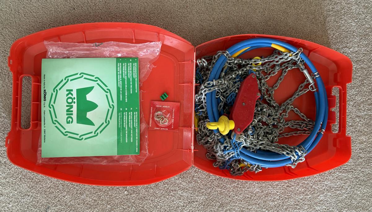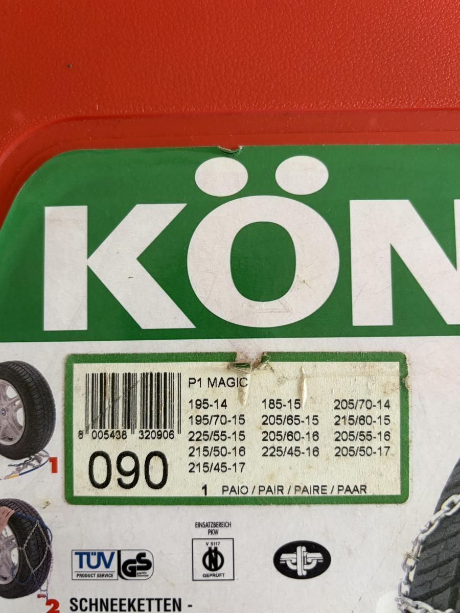 Quality König snow chains, model P1 Magic 090, in their original case and only used once.
