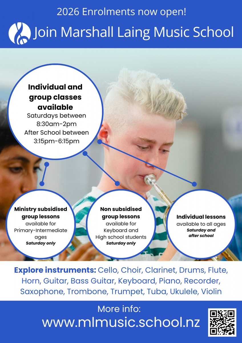 2026 Enrolments are now open at Marshall Laing Music School, located in Mt Roskill