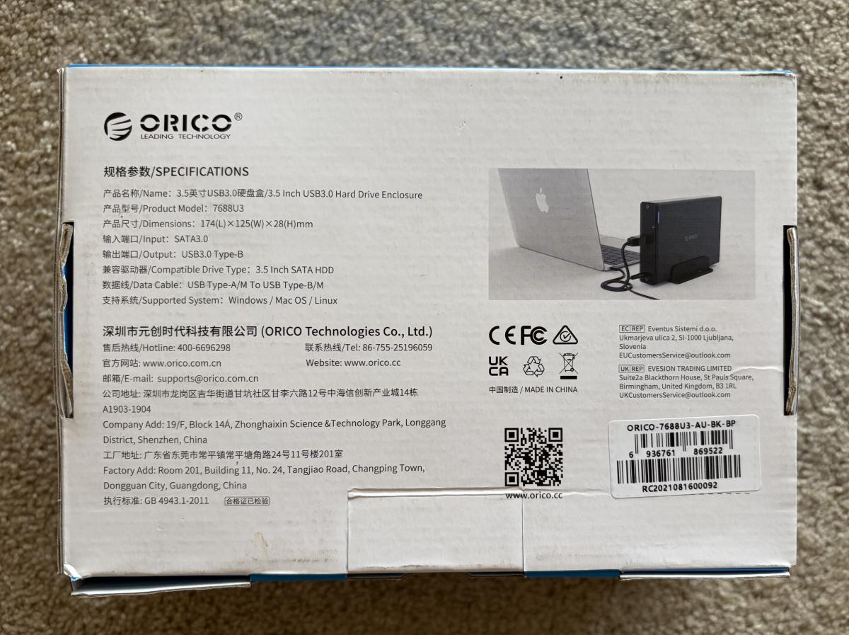Brand new ORICO 3.5” USB3.0 hard‑drive enclosure (model 7688U3).