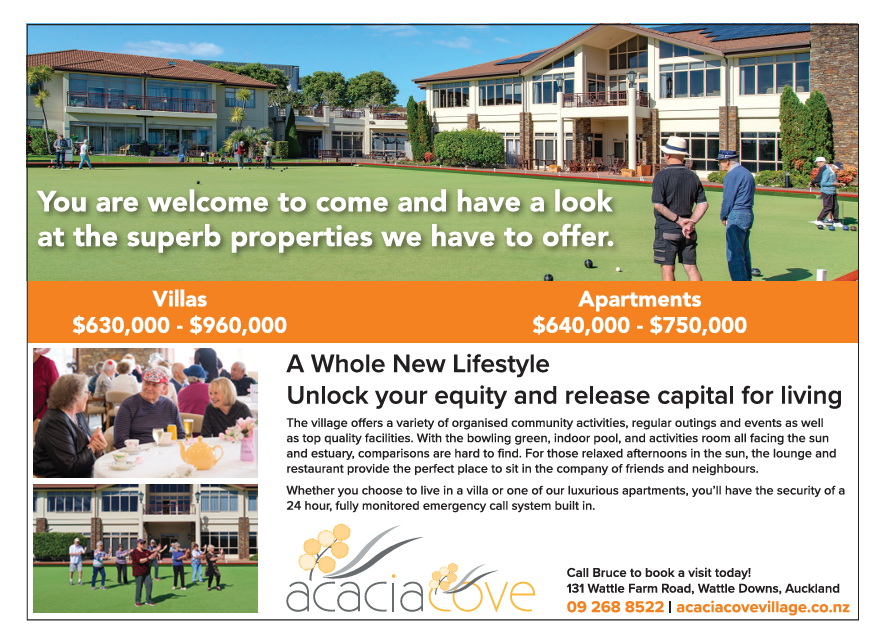 Acacia Cove, a country-style village situated on the beautiful Wattle Downs Peninsula has 31 weekly activities.