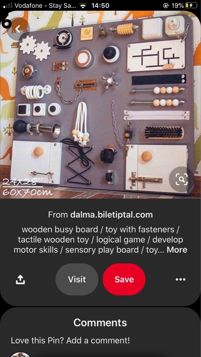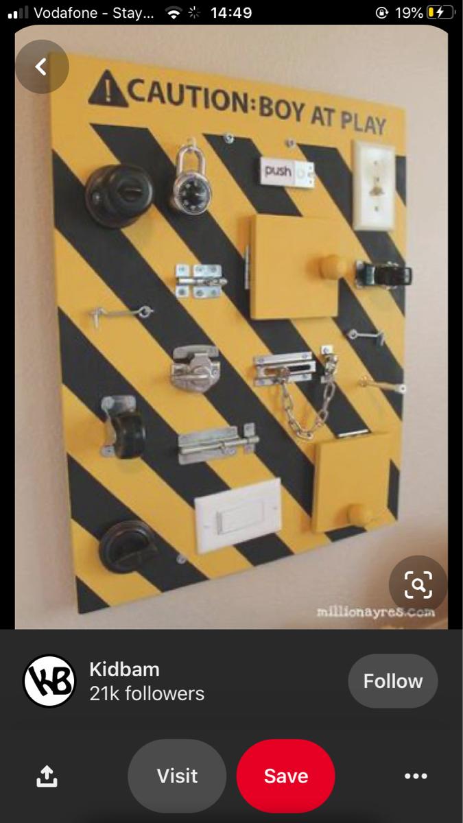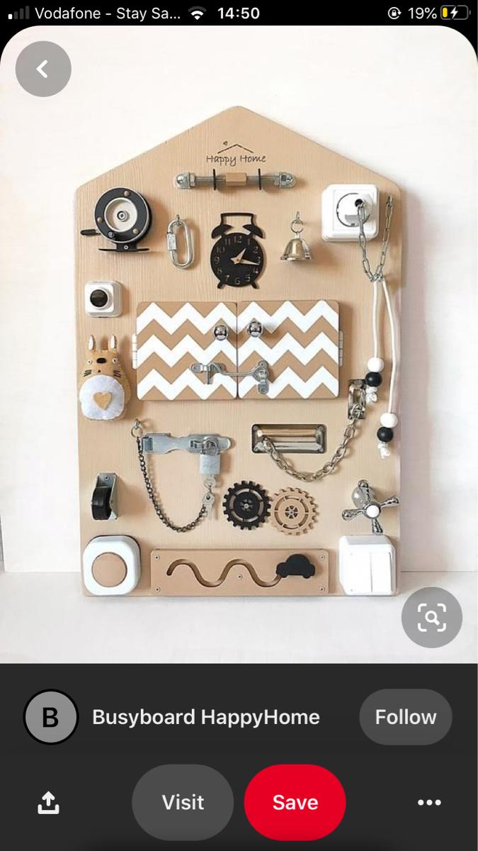 I would love to make a busy board, something similar to the photos. If you have any second hand items that I could take off your hands - any old hinges/ locks/ door handles/ little mirrors etc , I would love to hear from you =)
