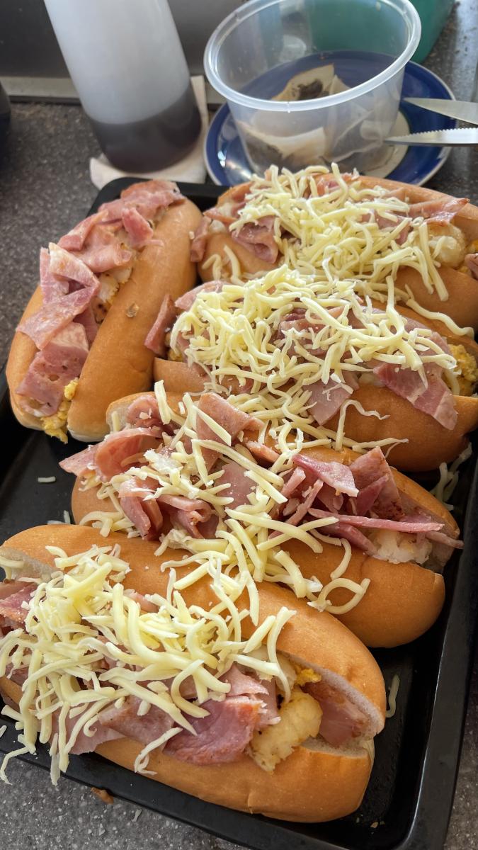 Cook bacon I used same pan after… View moreYou need. 6 Bread rolls. 6 Eggs. Bacon. 6 Pams mini hash browns Grated cheese. A Oven A element A pan Tongs and power