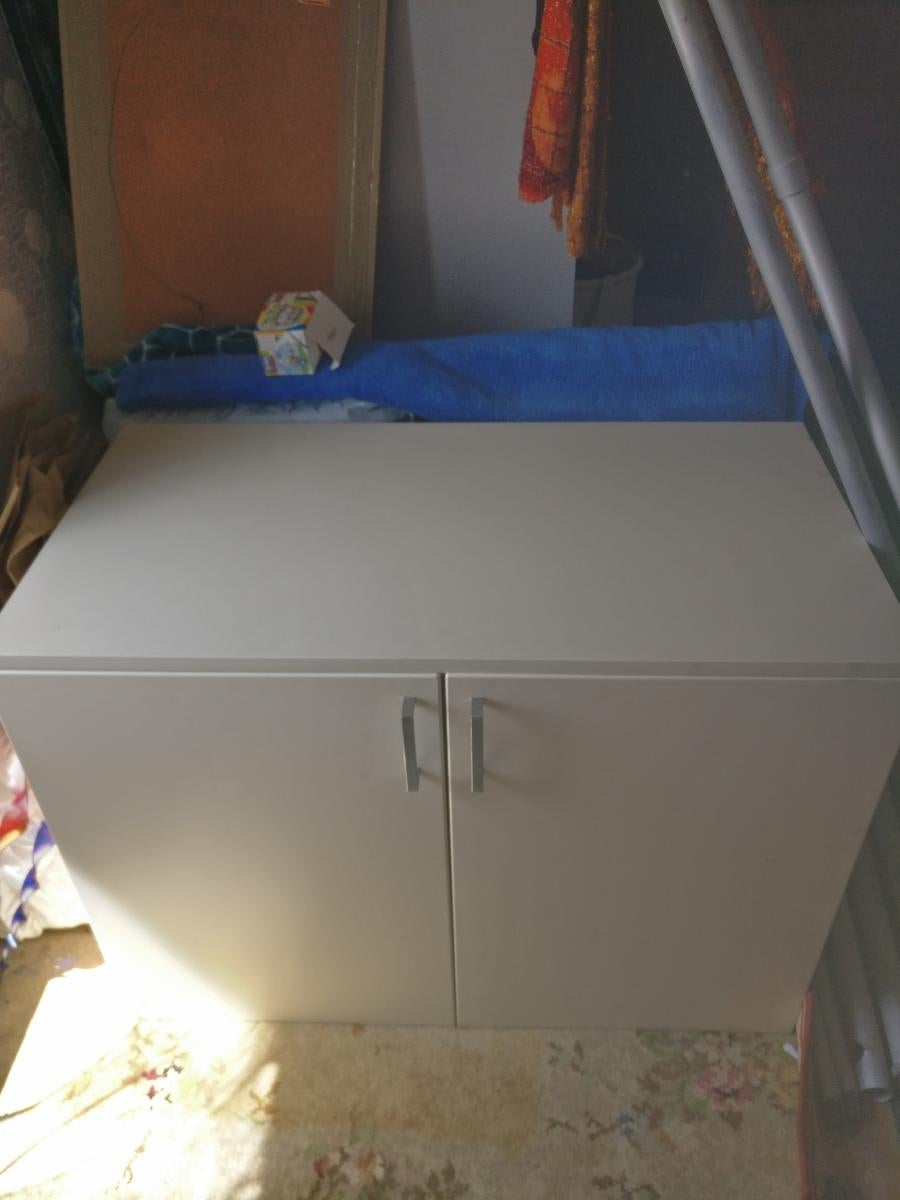 Here is a small cupboard which can be used for any kind of storage like beddings, used as a little pantry or for shoes etc. It has one shelf. This cupboard was on top of a pantry so it may need some kind of board or something at the bottom to give it a little lift. It is in a reasonably tidy … View moreHere is a small cupboard which can be used for any kind of storage like beddings, used as a little pantry or for shoes etc. It has one shelf. This cupboard was on top of a pantry so it may need some kind of board or something at the bottom to give it a little lift. It is in a reasonably tidy condition except for one side which may need a bit of tidying up as can be seen in second photo.