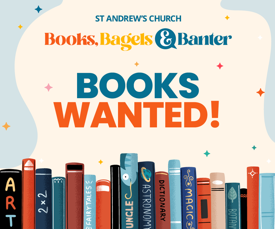 Books can be dropped off at the church garage on a Wednesday or weekdays during office hours: