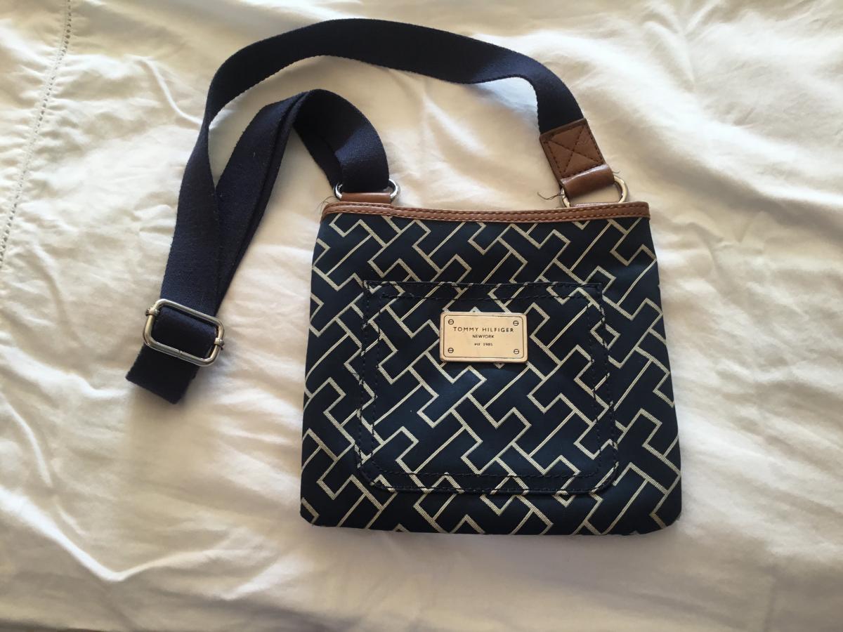 Small Hand Bag with shoulder strap.three pockets, one zippered inside hand bag.Like new.