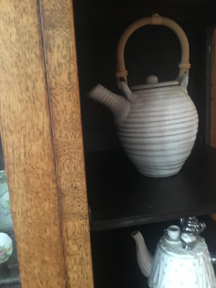 Small pottery tea pot. Good for display as well as making tea, very nice looking.