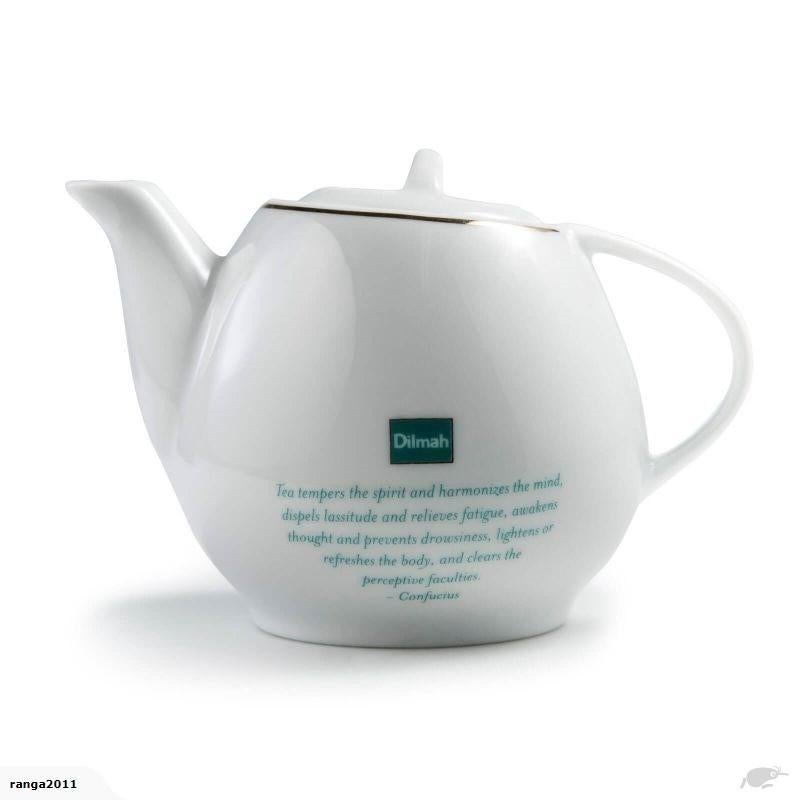The Melton Dilmah Teapot is a quality, fine porcelain tea pot subtley branded with the Dilmah logo. Holding 460ml it's perfect for 2 teacups and a great pourer to match.