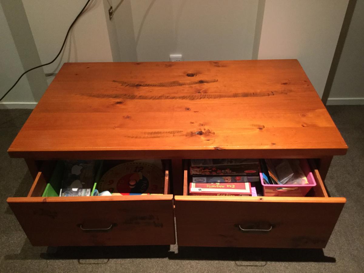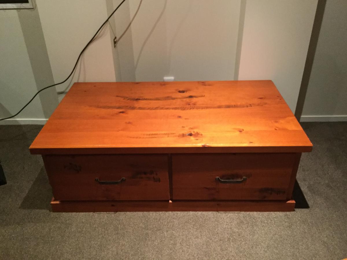 Solid wood coffee table or tv table 2 deep drawers.