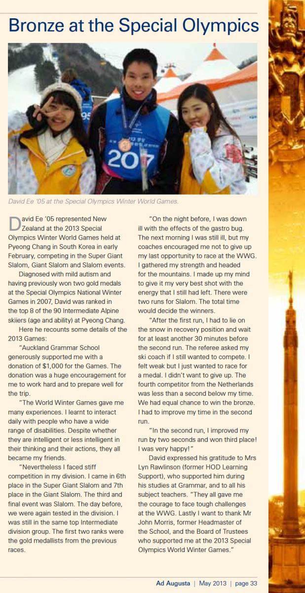 As many of you are aware, I am an Old Boy of Auckland Grammar School and currently doing my professional development studies at Carey Baptist College by enabling me to grow deeper in my faith and walk with our Lord Jesus and to be fully equipped for ministry as to where the Lord is leading me to for his right purpose and plans for me in accordance to his perfect plan. As well as, I am an alpine skier who began with Special Olympics New Zealand and now proudly represent New Zealand under Virtus International, which is the global governing organisation for elite athletes with an intellectual impairment.