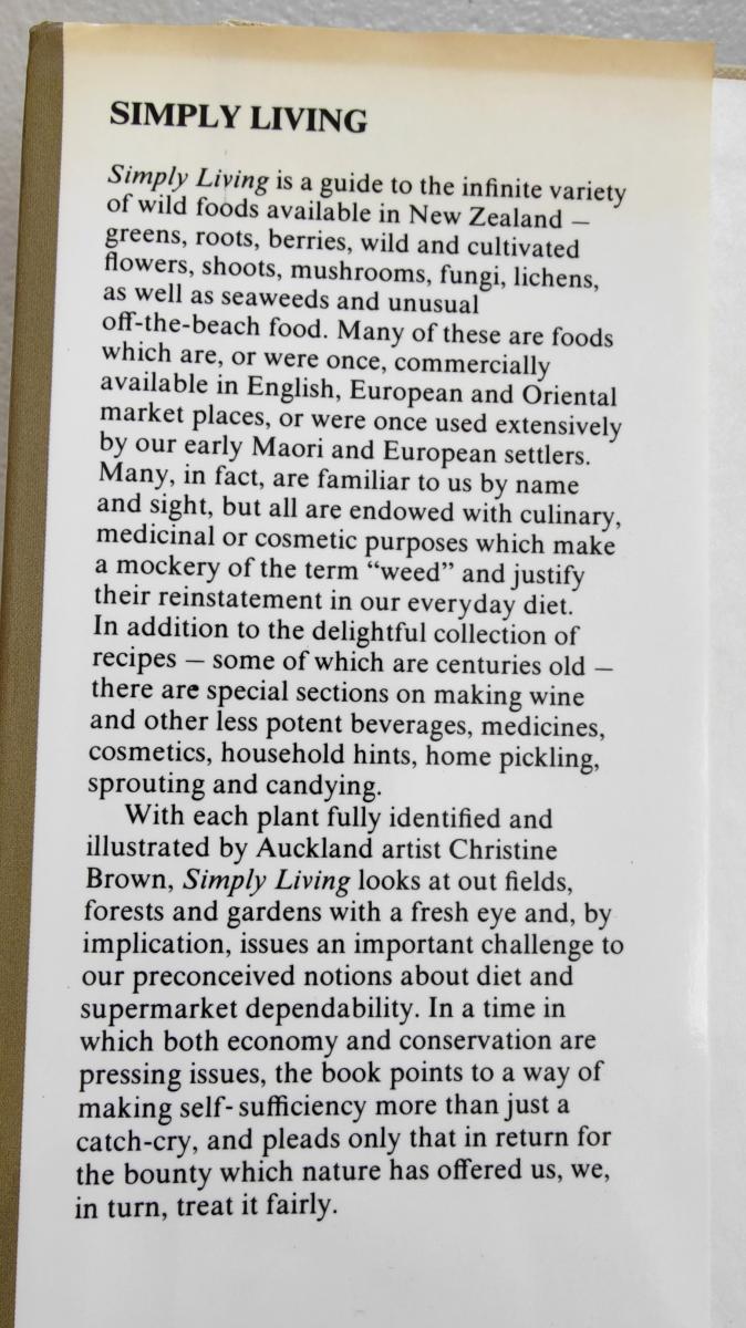 Simply Living by Gwen Skinner is a guide to the infinite variety of wild foods available in New Zealand - greens, roots, berries, wild and cultivated flowers, shoots mushrooms, fungi, lichens, as well as seaweeds and unusual off-the-beach foods.