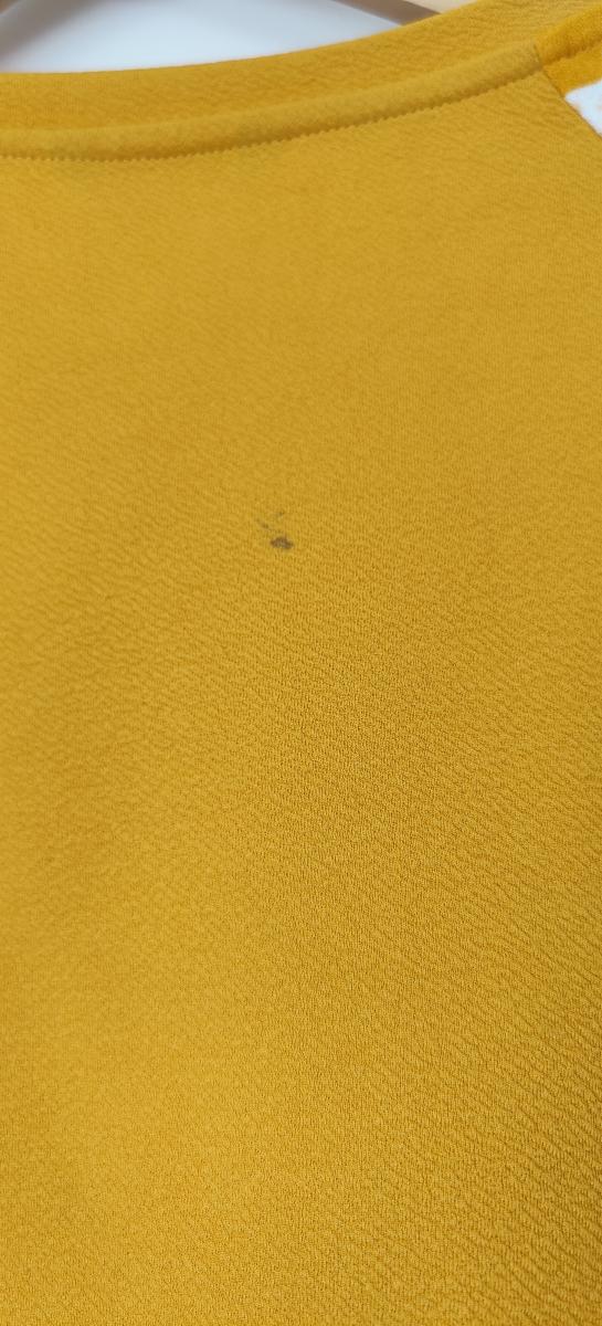 Also … View moreThis lightweight sweatshirt features an unusual crinkle-patterned, yellow fabric for the body, with sleeves in a pretty floral - please see close-up photo for this detail.