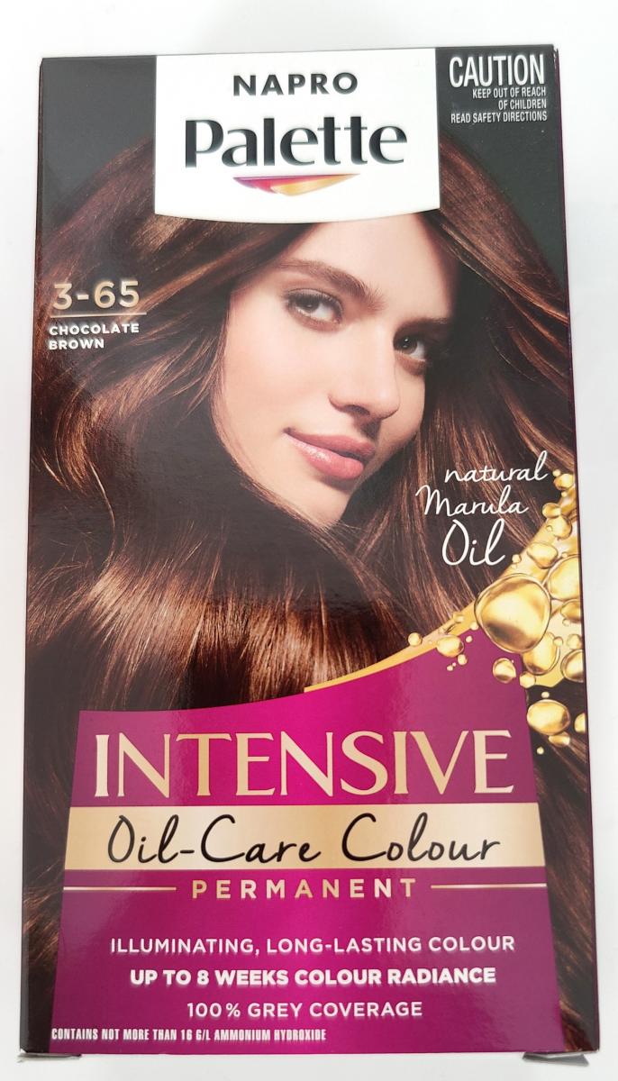Napro Palette Intensive Creme Colour Permanent Chocolate Brown 3-65 provides rich, long-lasting colour, deep nourishment for intense shine and perfect grey coverage with micro-oils.