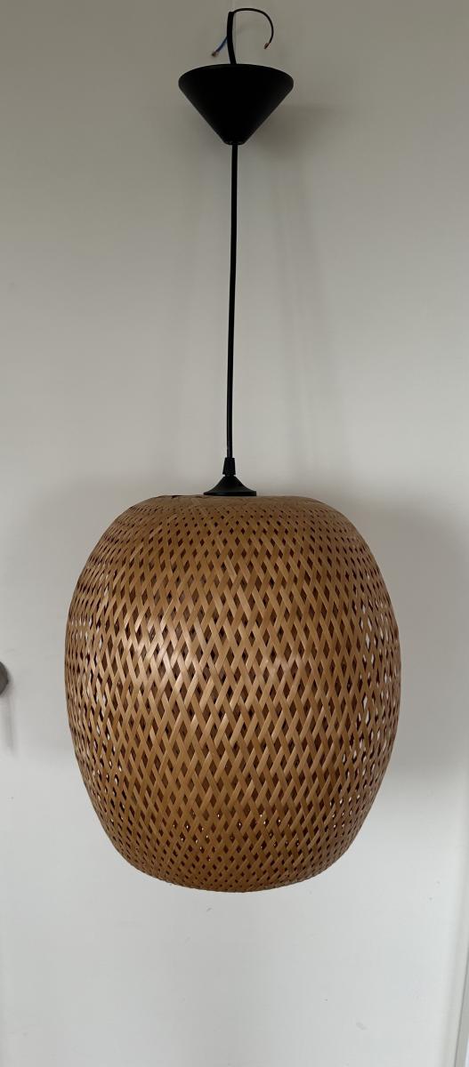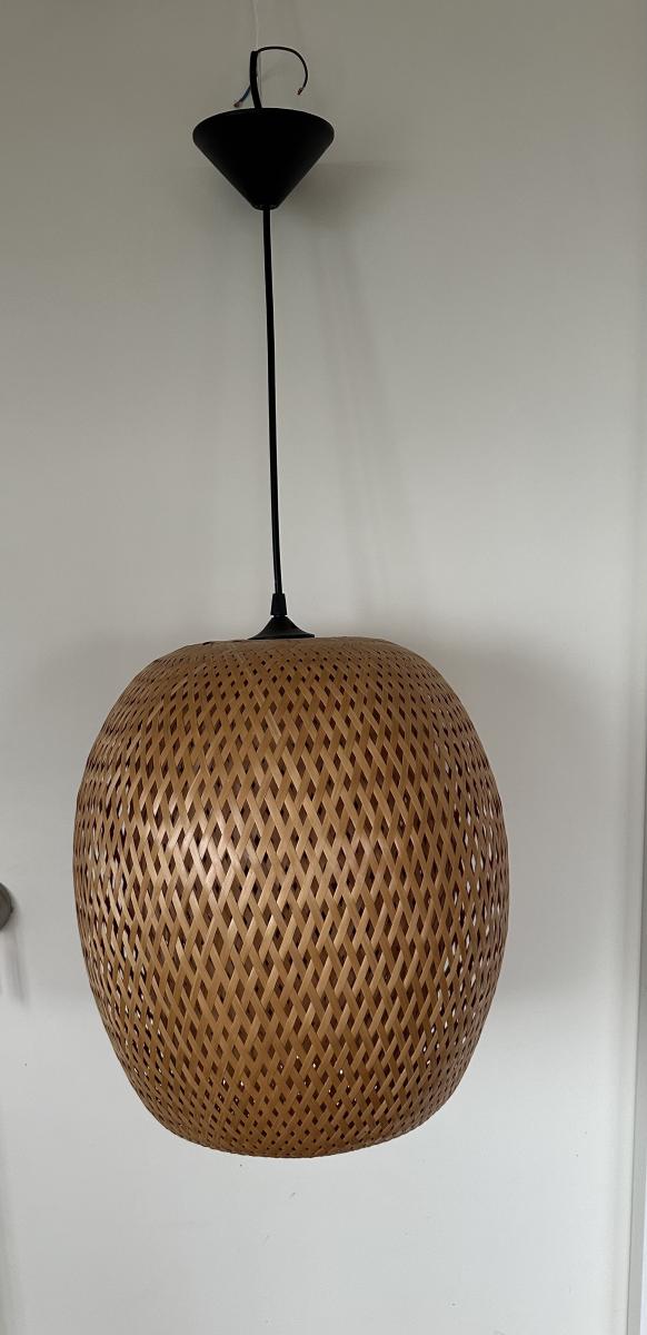 Lovely large Quality hanging Pendant light, wrap around wicker interior. New, unused in interior downsizing project.