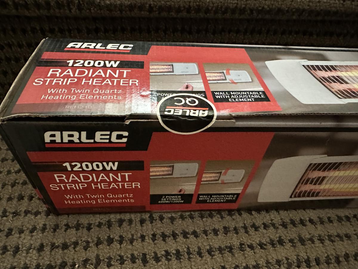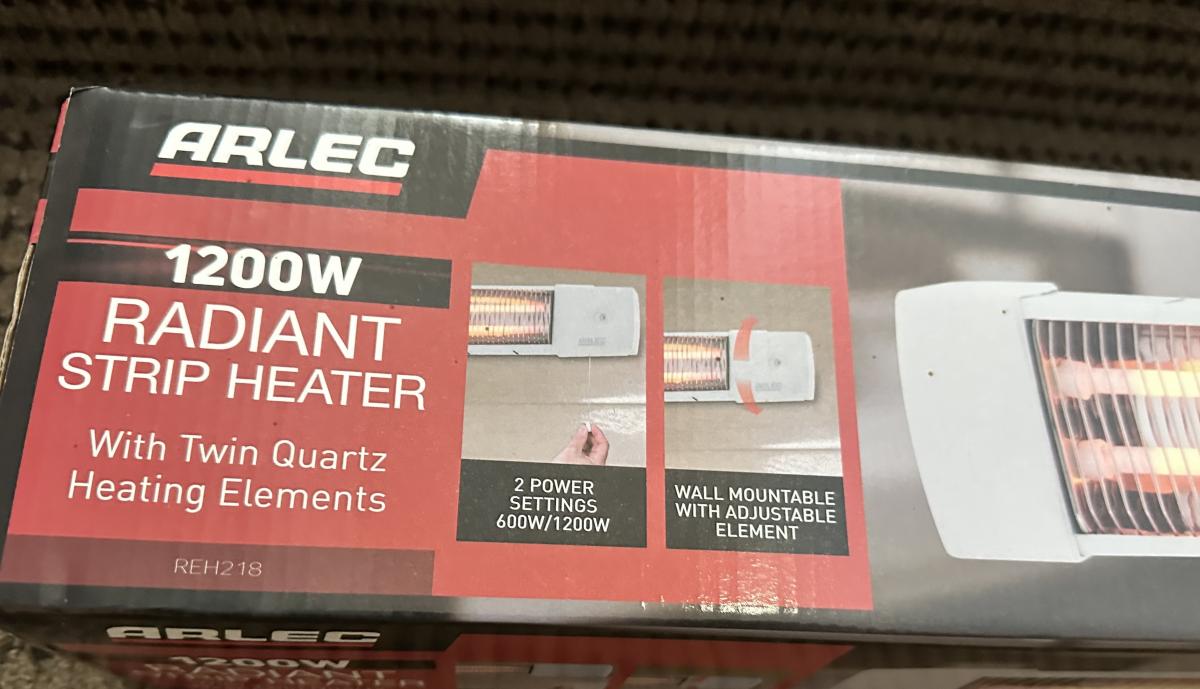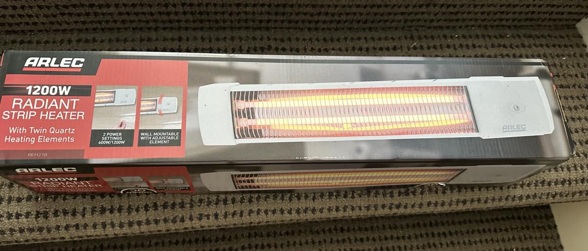 Unopened Arlec Radiant Heater 1200w. Great for outside under a pergola or covered BBQ area.