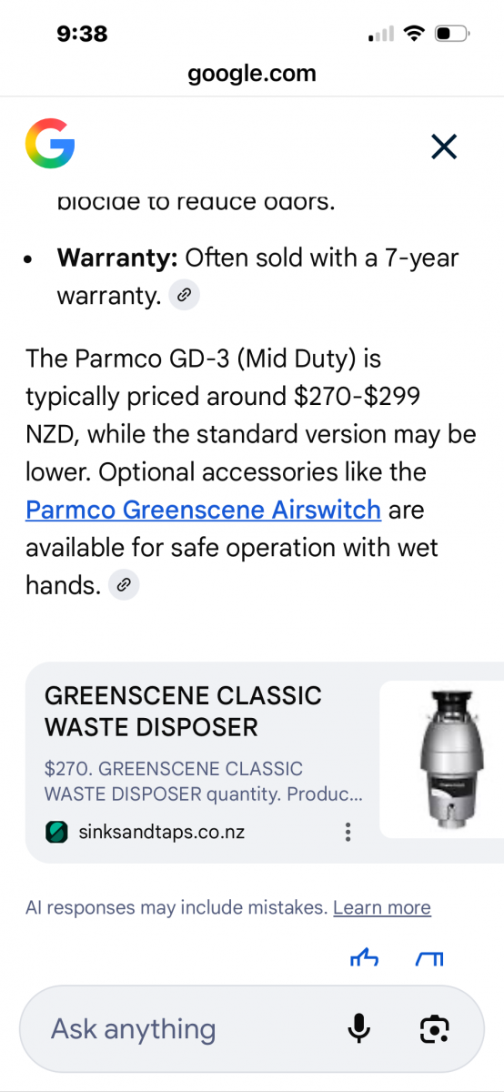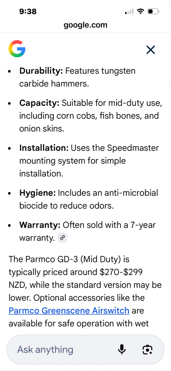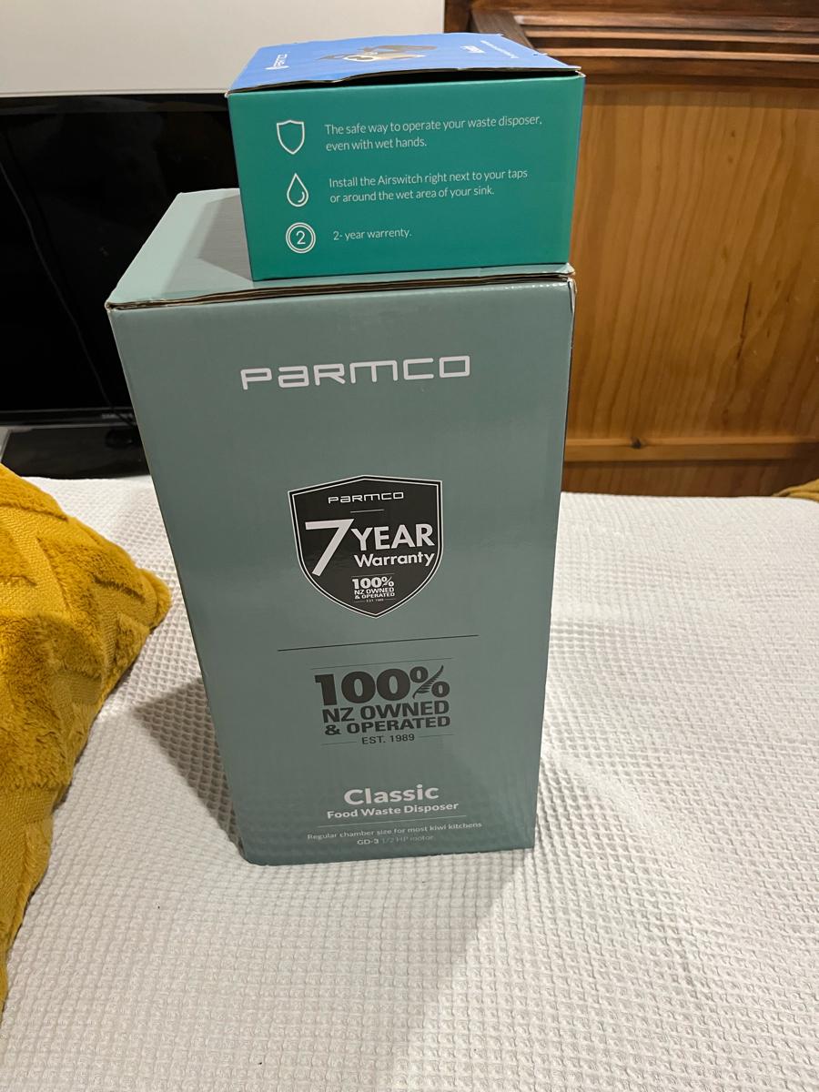 Parmco classic GD3 1/2 horsepower insinkerator. Also includes the air switch. Brought when renovating previous home but sold house instead. Never been unpacked or used. This is only 2.5 years old. Parmco include a 7 year warranty. Pick up is either Flat Bush or otahuhu. Refer photos for more info