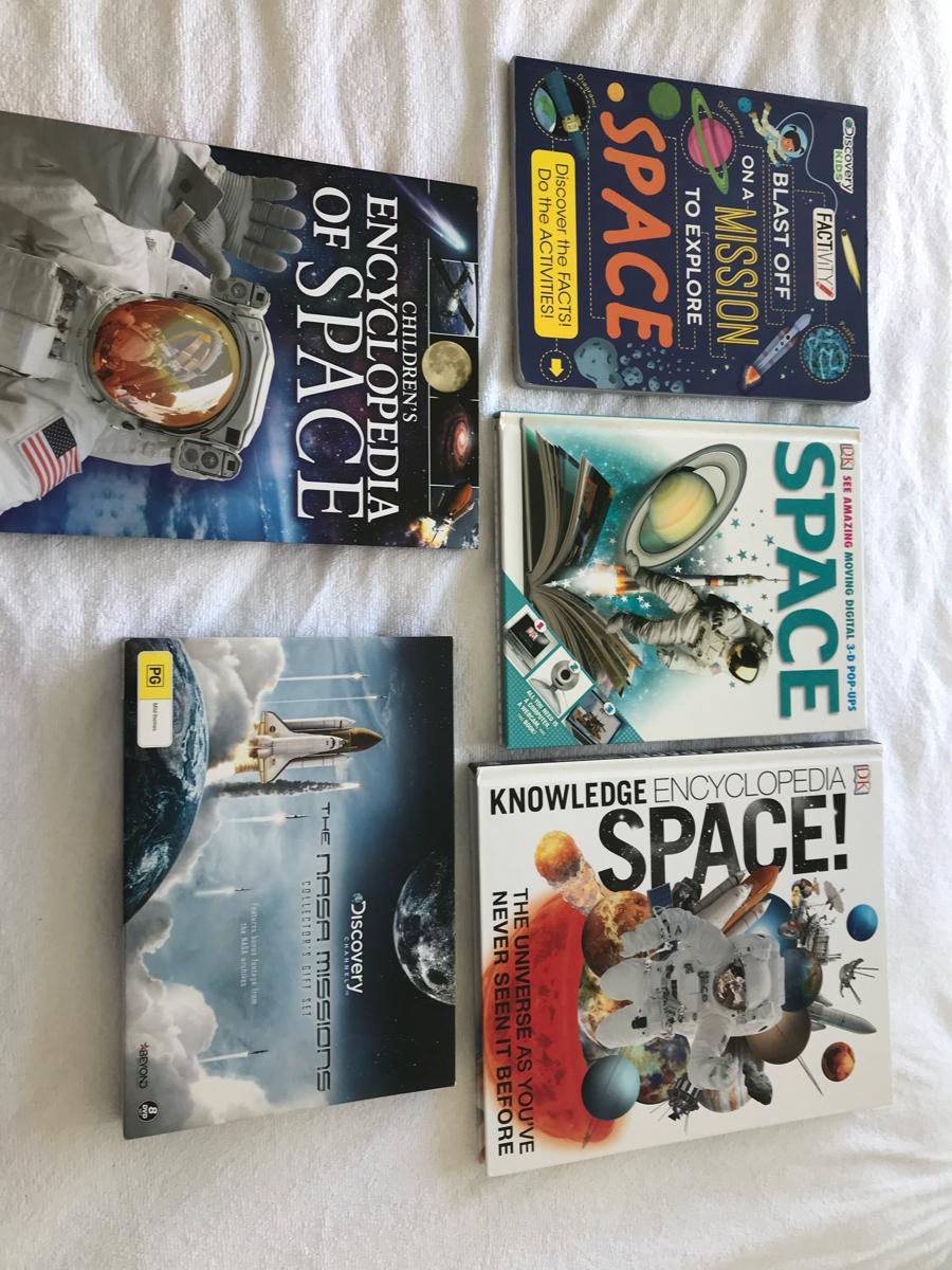 Children’s space books & space dvd (8 dvd set). 4 books and dvd set with 8 dvds. In perfect condition, no torn pages or damage. Pick up is Flat Bush or otahuhu