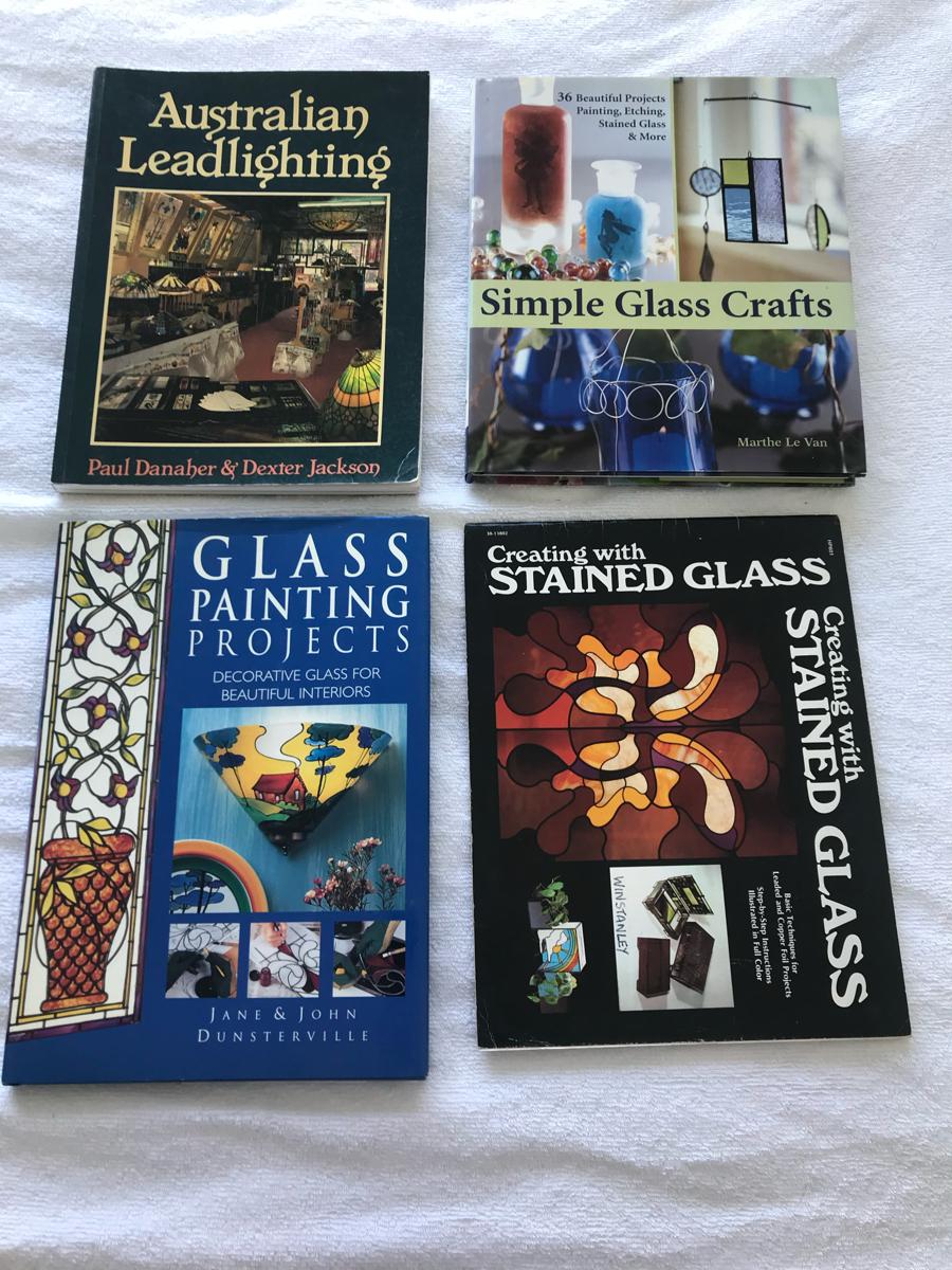 4 x lead light glass books. In n. No torn pages. Pick up is Flat Bush