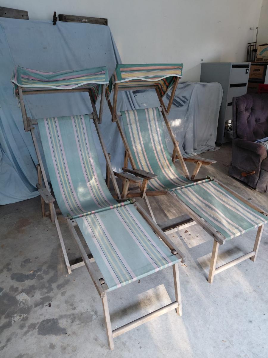 A Pair. Been in family for years. Wood frames sound but in need of professional recanvassing. Worth the project effort to restore to new.