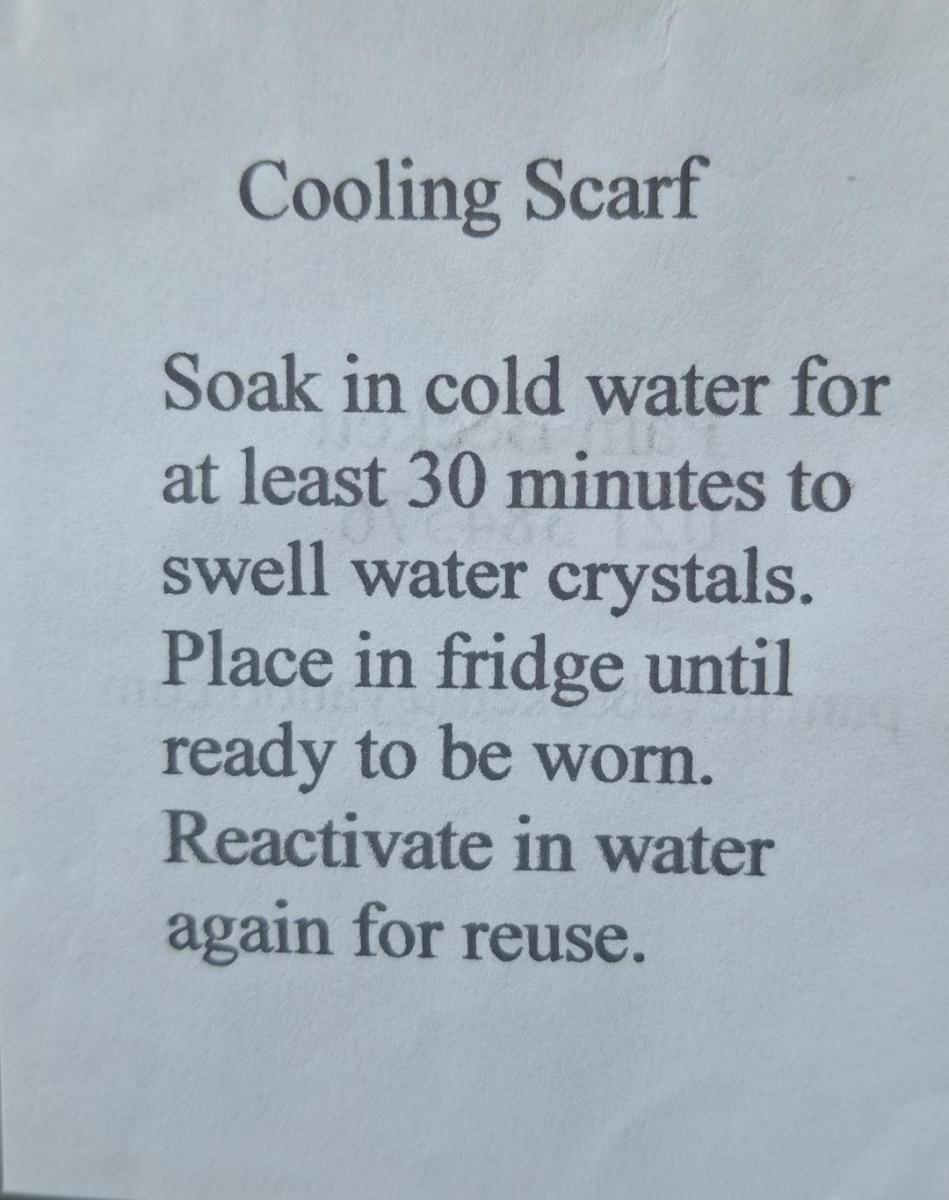 A great little scarf ideal for outdoor activities including gardening that keeps your body cool.