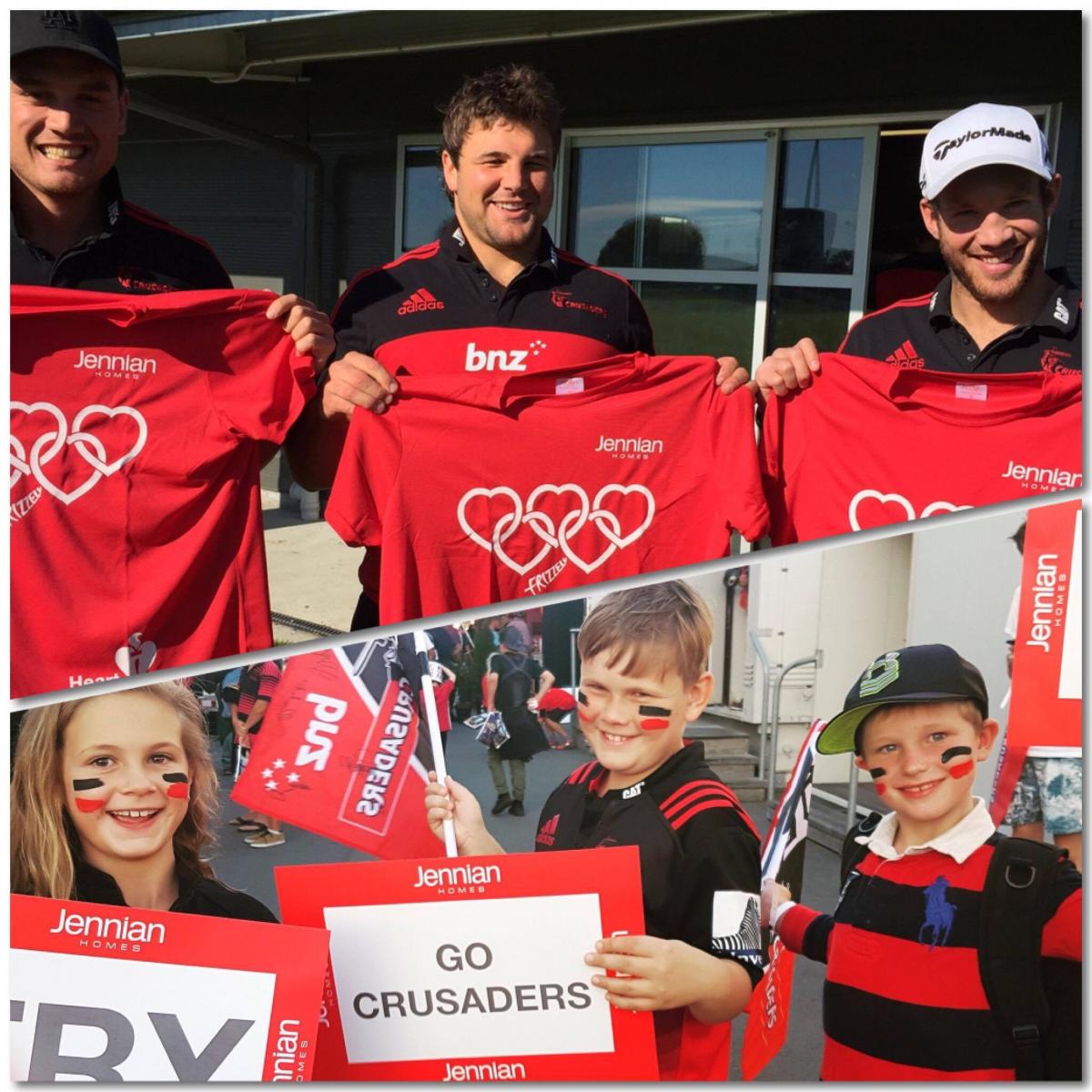 Jennian Canterbury North are very proud sponsors of the team and would like to invite everyone to join us before the game at the Jennian Homes/More FM fanzone at the entrance of AMI Stadium for free face painting and your try signs to hold up when the Crusaders cross the line and to collect signatures at the end of the game!!