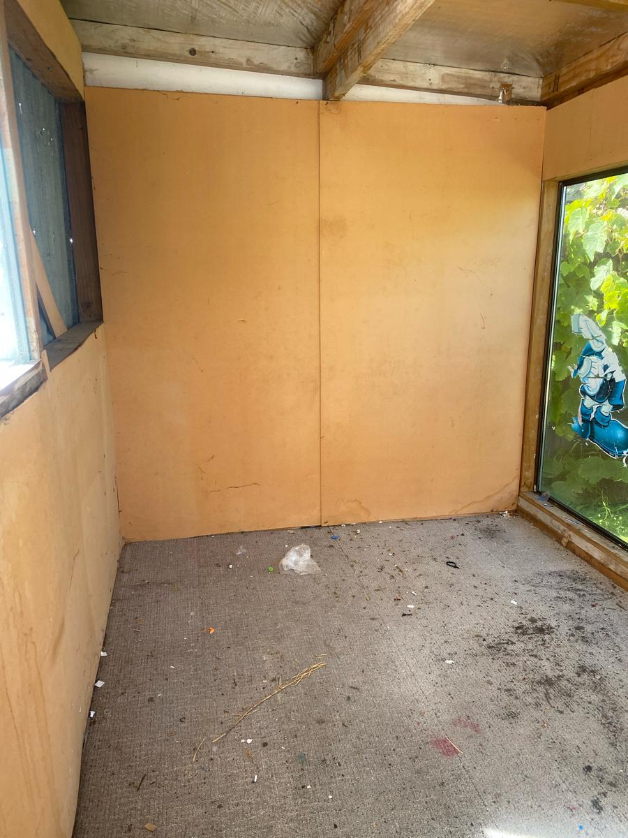 Make me an offer. Come take it away. Solid and water proof inside. Could be used as a garden shed or a play house for children. Approximate size, 205 cm high