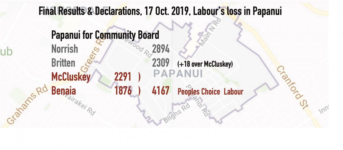 And for those interested, here is a breakdown of the final PAPANUI community board results. As you can see, Labour polled well as a grouping. Combined, twice as many votes than anyone else, but gained no win. If they'd fielded a single candidate, they would most likely have won a seat, which … View moreAnd for those interested, here is a breakdown of the final PAPANUI community board results. As you can see, Labour polled well as a grouping. Combined, twice as many votes than anyone else, but gained no win. If they'd fielded a single candidate, they would most likely have won a seat, which they almost did anyway with two competing candidates. More vote splitting.