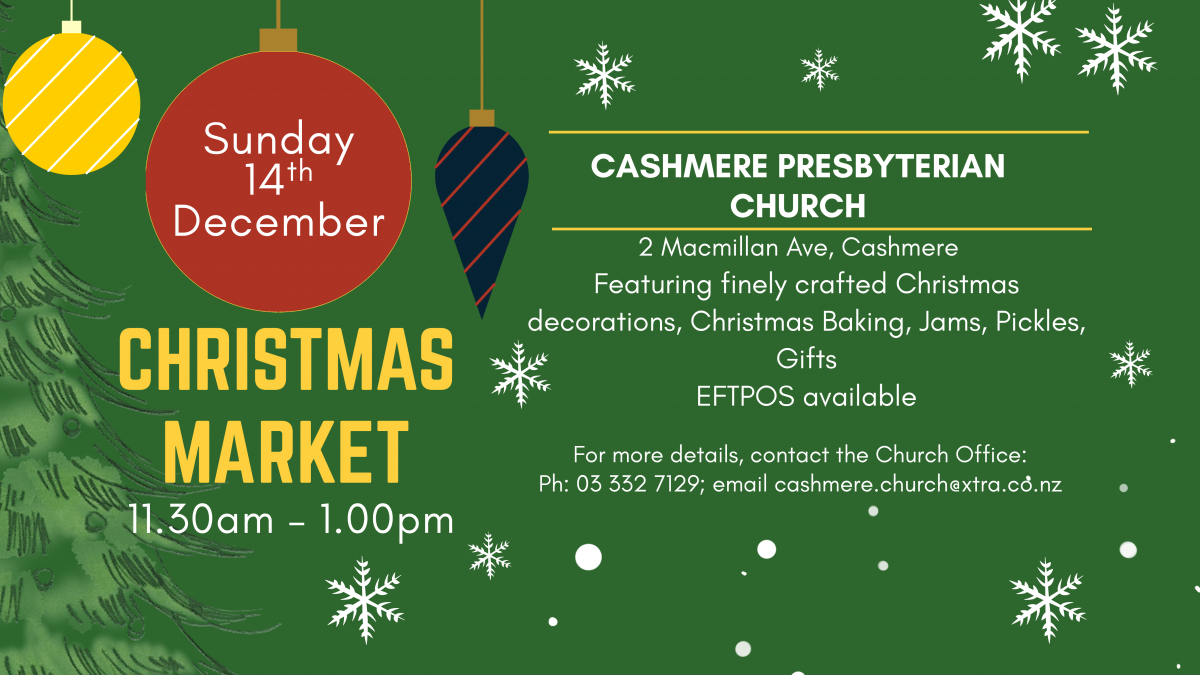 11.30am to 1.00pm, at Cashmere Presbyterian Church, 2 Macmillan Ave.