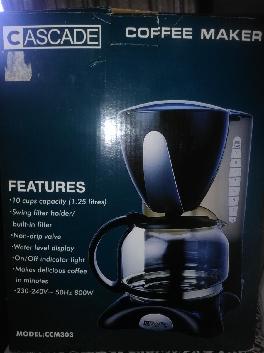 Never been used,10 cup capacity,swing filter holder,non- drip valve,on/off indicator light.230-240v --50Hz 800W.
