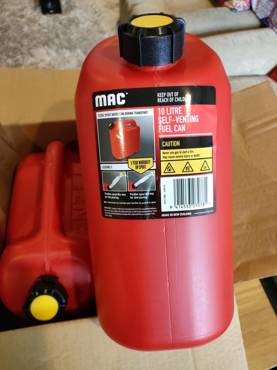 Two brand-new NZ made 10 litre fuel containers