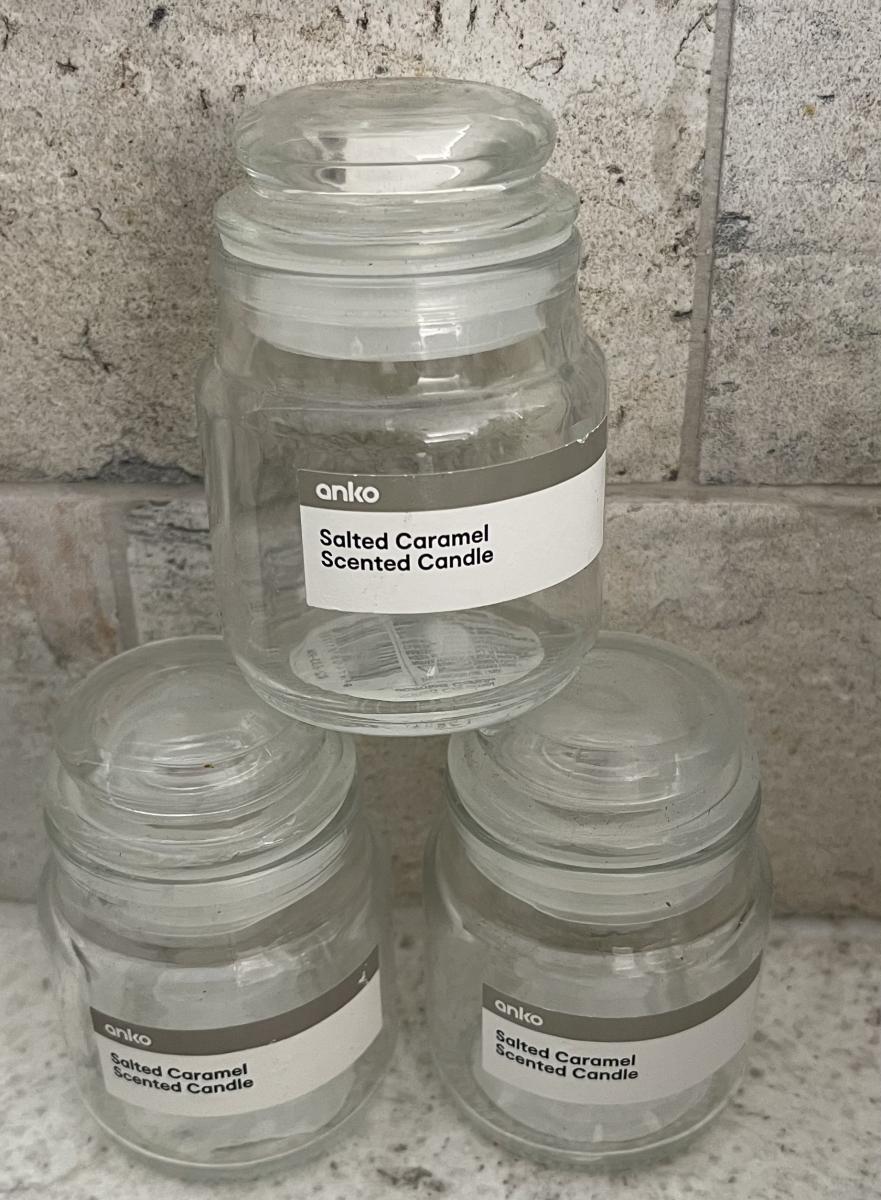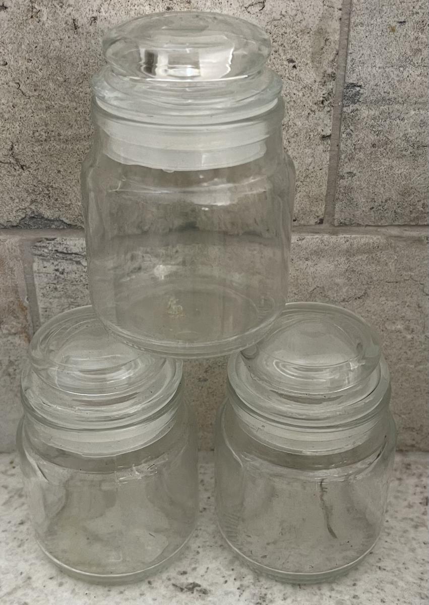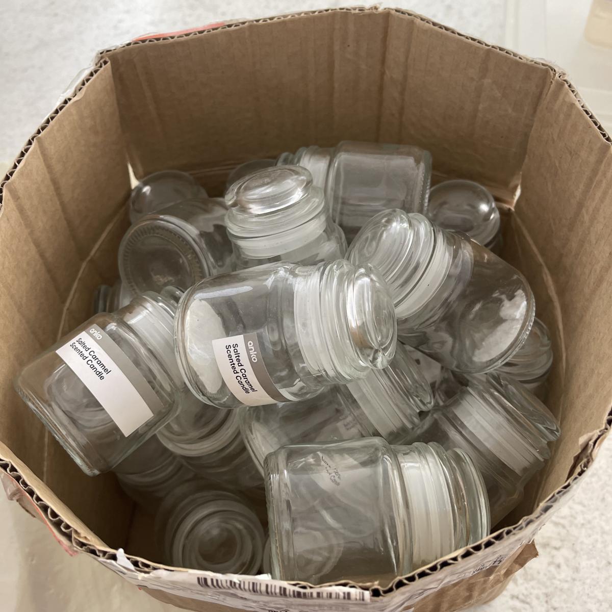 35 used small jars. Great for candle making, spices, nick nacks, craft supplies, jewellery, screws & nails, etc.