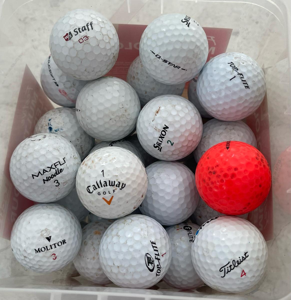 Great for practice … View moreBox of 35 used golf balls………Bought by hubby who “definitely plays golf.” Turns out he mostly talks about it!!!!!