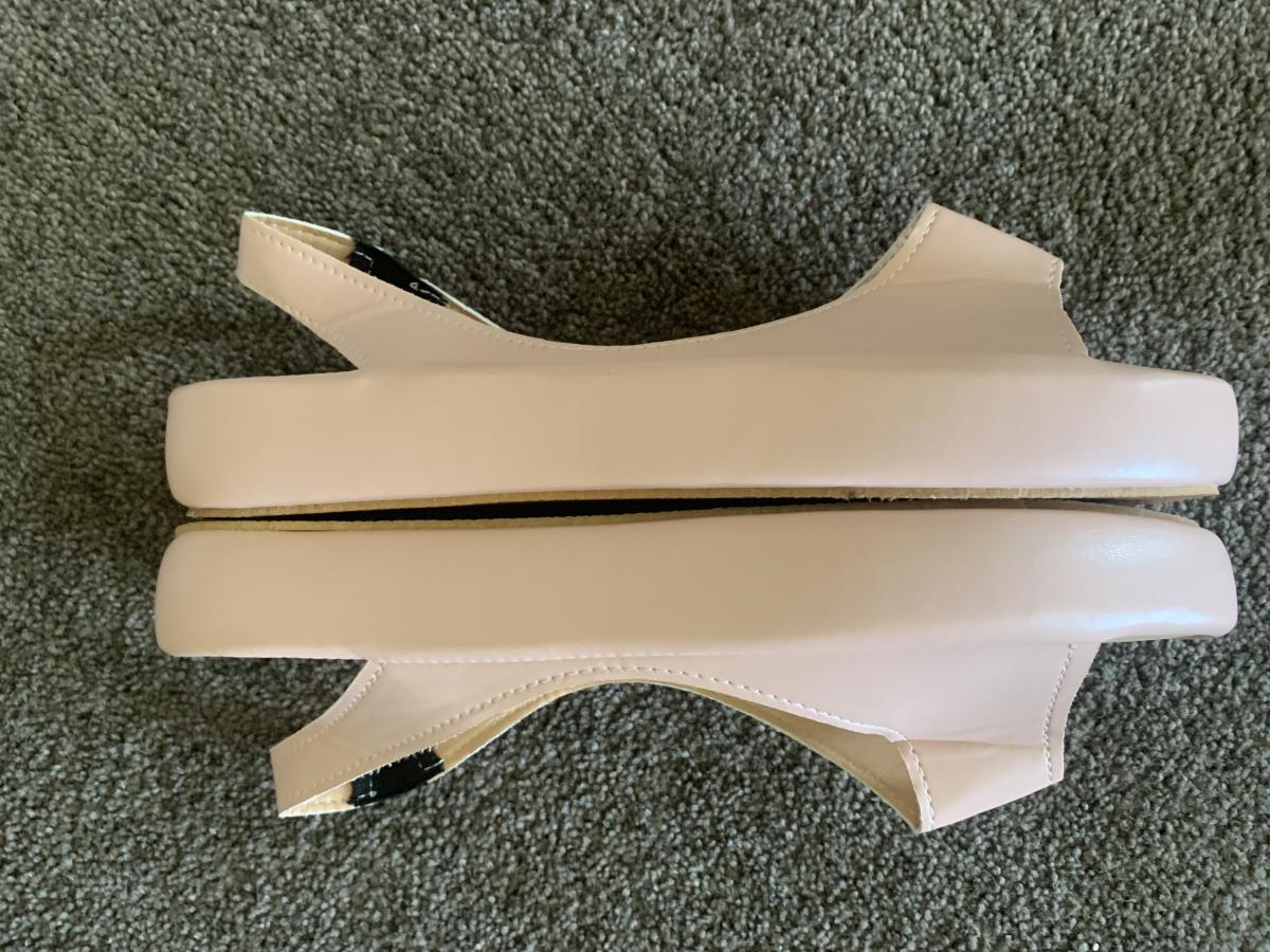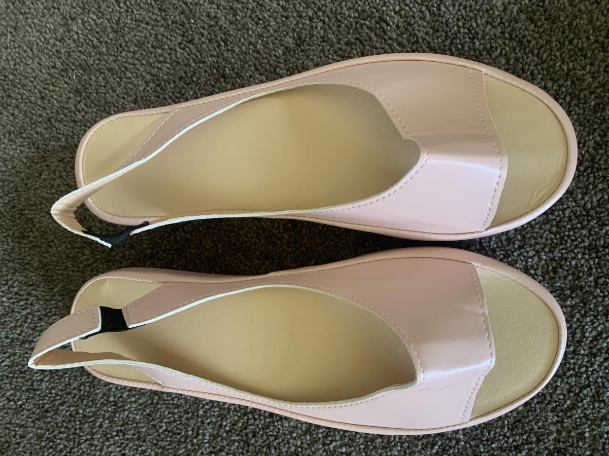 Pair of sandals in a blush pink. Size 7.5/8. Too small for me. Unworn.