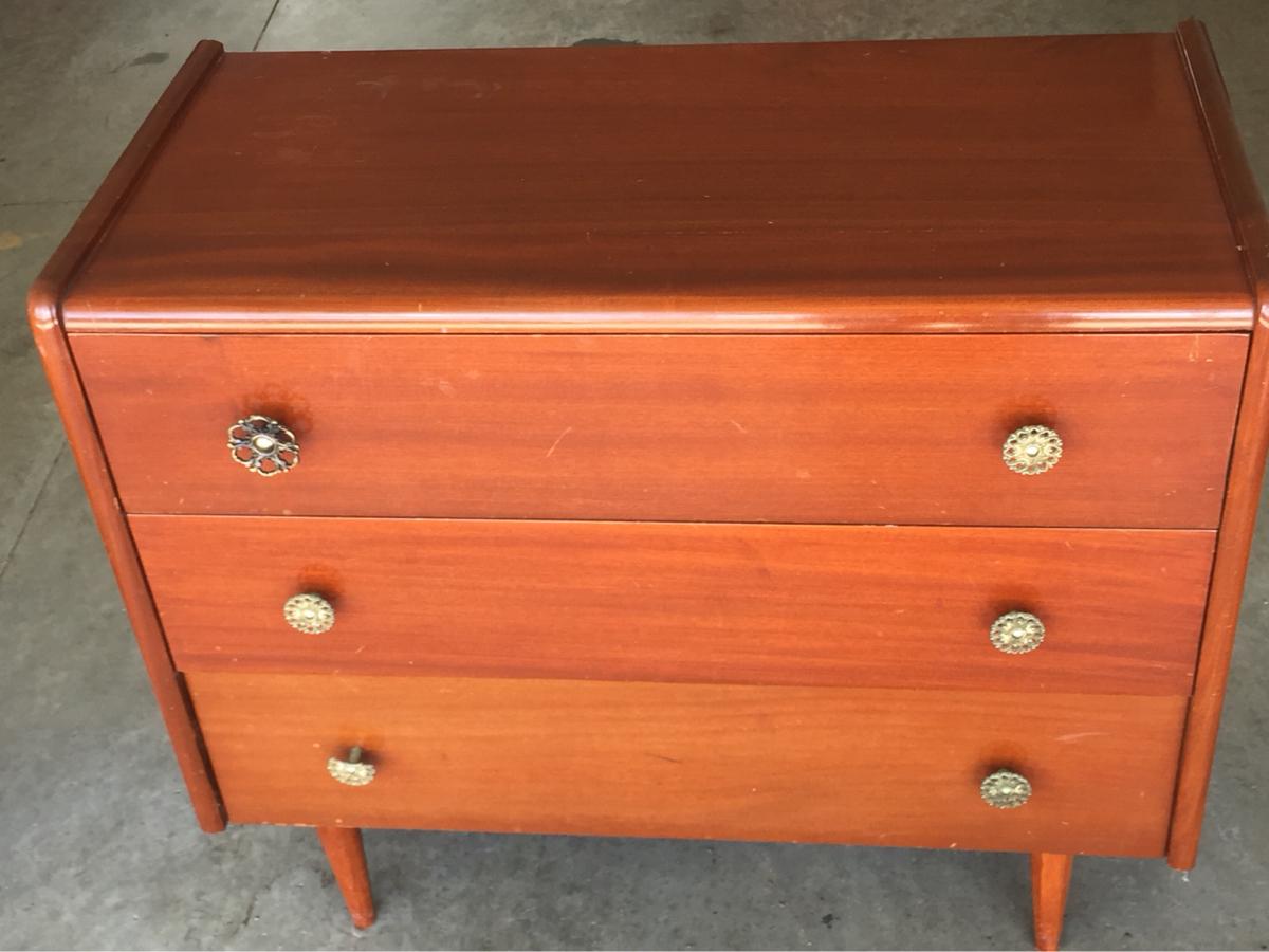 This was gifted by my great aunt to our daughter. It has been in storage for twenty years. Our daughter doesn’t want it. Some superficial marks on top. Broken knob and replacement knob as per photos. Also discovered when moving it a loose leg. No evidence of bora.
