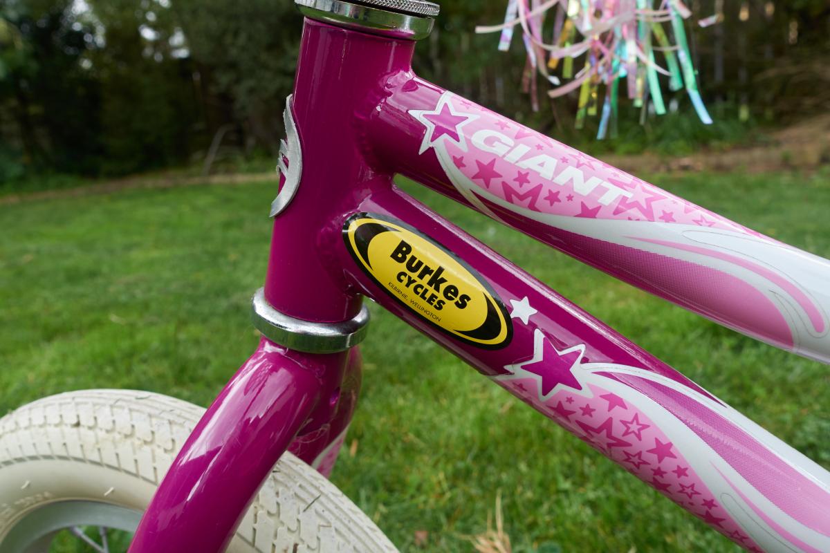 Lightly used girls' 12" bike. Giant brand, purchased from Burke's Cycles in Kilbirnie 4 years ago.