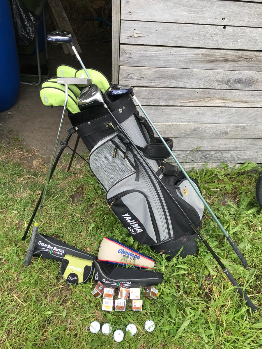 Assorted carbon fibre golf clubs. Ping Big Bertha, Ping putter. Balls and bag all included. Used twice. $350.