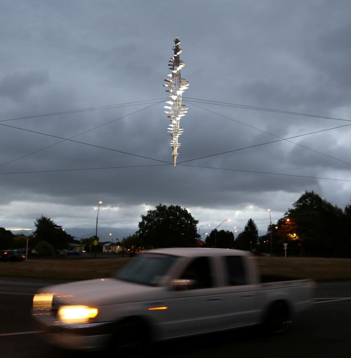 A new five-metre sculpture that reflects Greytown's colonial, native and Maori history has been installed in its centre-most park.