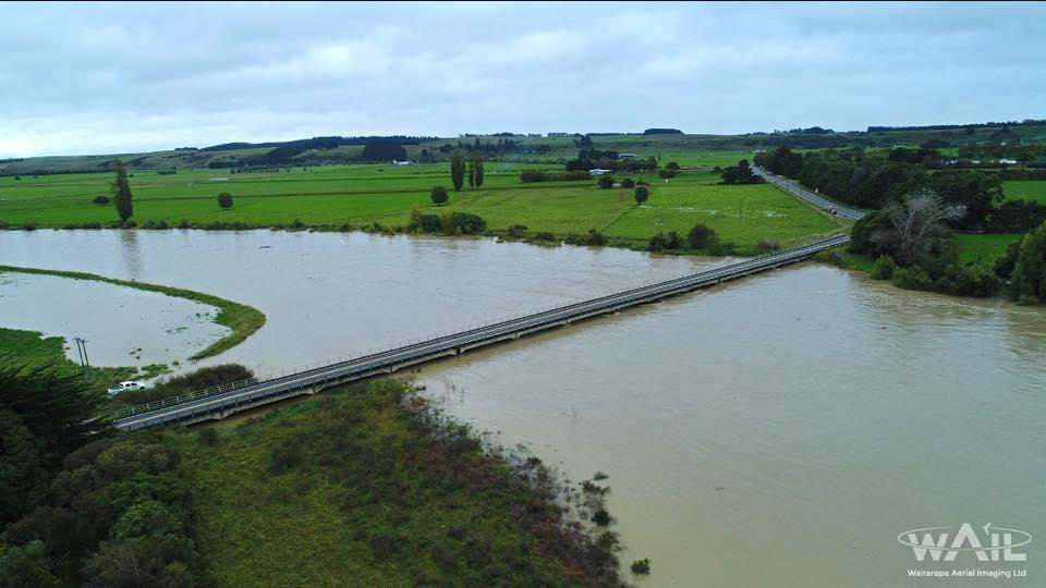 Chris Moore posted this on our Facebook page. It is a pic of the water coming right up to the bottom of the Waihenga Bridge northeast of MArtinborough.