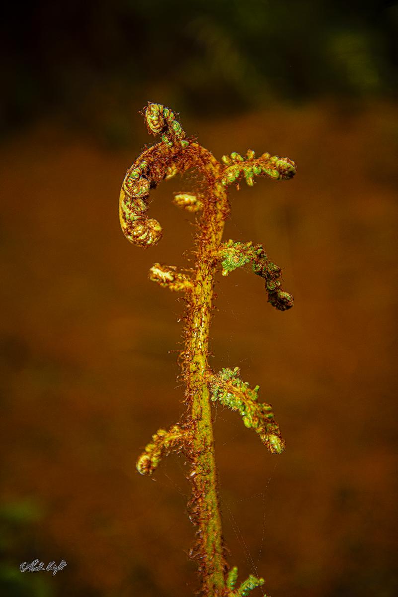 A very young Mamaku (Black Tree Fern) photographed (2020) beside the track up to the trig when it was still surrounded by pine trees.