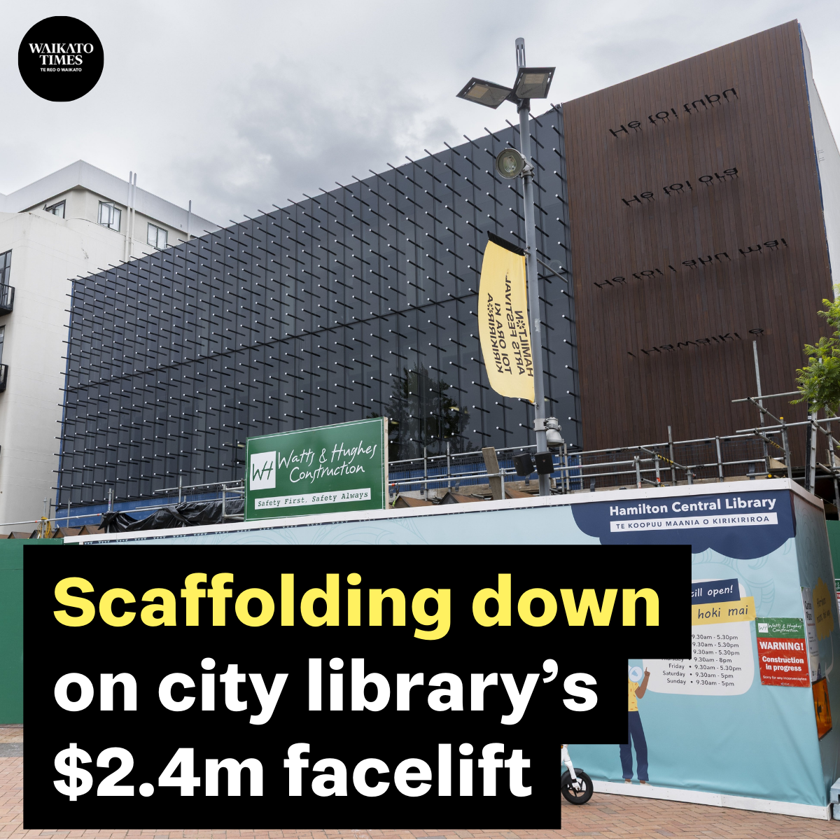 After months behind scaffolding, Hamilton’s central library has revealed its revamped facade.