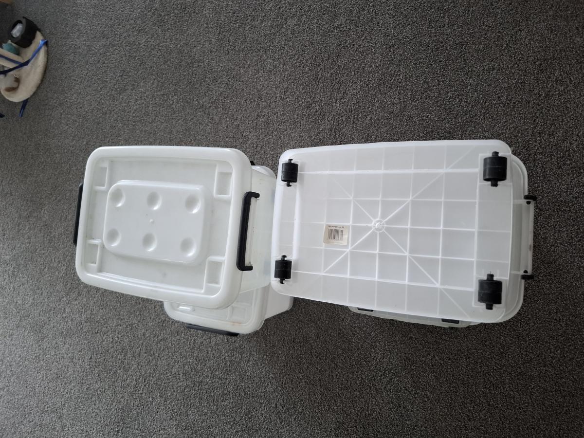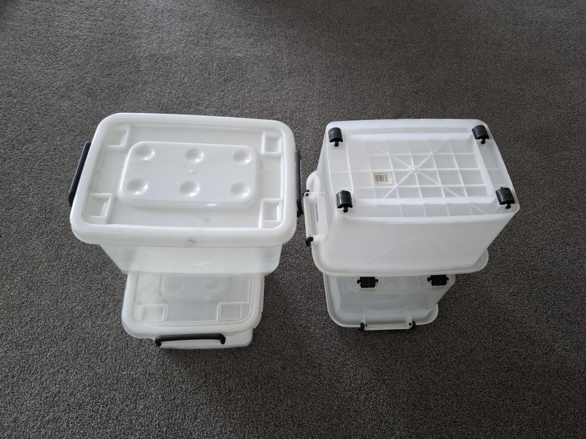 Semi opaque Plastic bins on rollers SET of Four