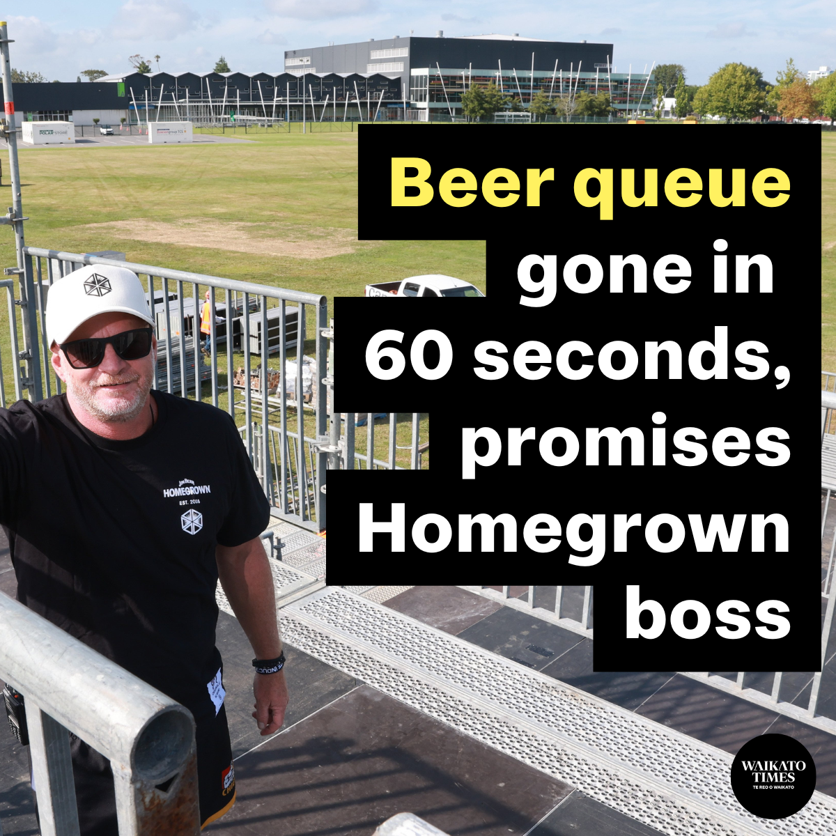 The one-minute turnaround is central to their pitch as 30,000 people prepare to descend on Claudelands Oval for the March 14 event, after 18 years of it being based … View moreHomegrown organisers say punters will be able to get from the bar back to the music within 60 seconds at next month’s festival.