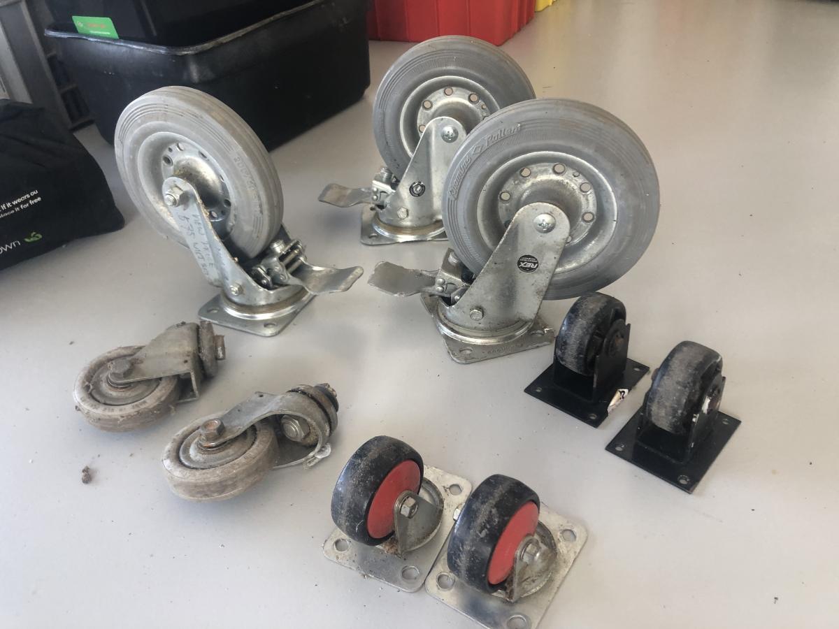 4 small wheels $ 20 , two medium size bolt holes $25 , and 3 big swivel base $ 45, Need to collect from Te Awamutu