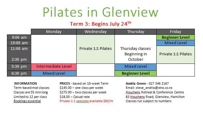 Pilates classes are now held in Glenview There are a couple of spaces left so register your interest early.