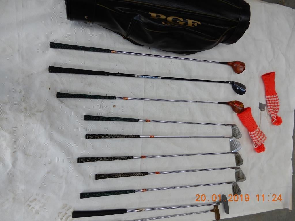 Three old-style woods Brand PGF in sizes 2, 3 and 5. All well looked after. Includes modern driver CB1000-size 4 and putter Fazer brand. All have grips … View moreGolf Club Set with PGF Black Golf Bag to suit right-hander. Measured for petite player 1.50m height. Brand is PGF for Irons sizes 3,5,6,7 and S.